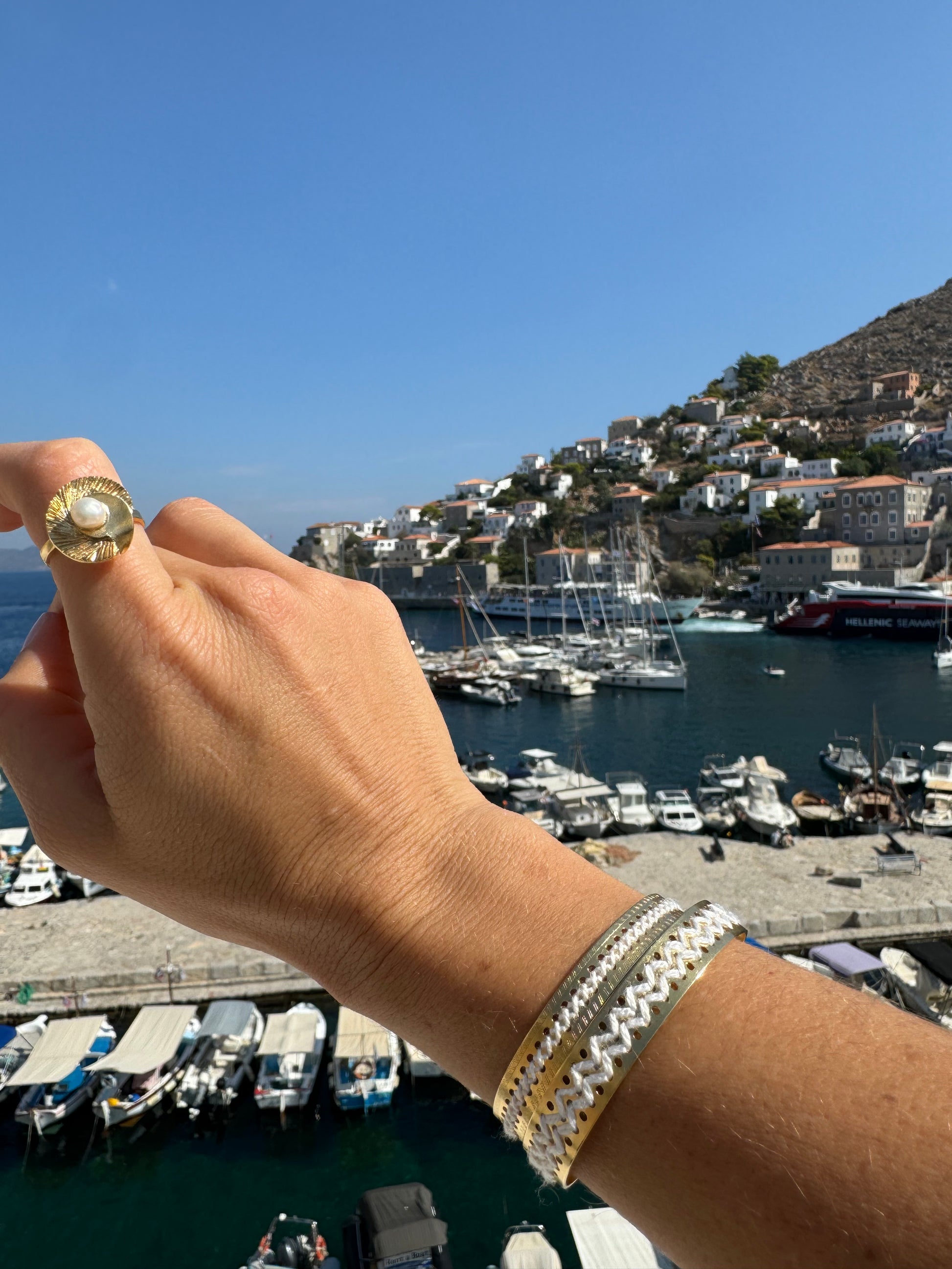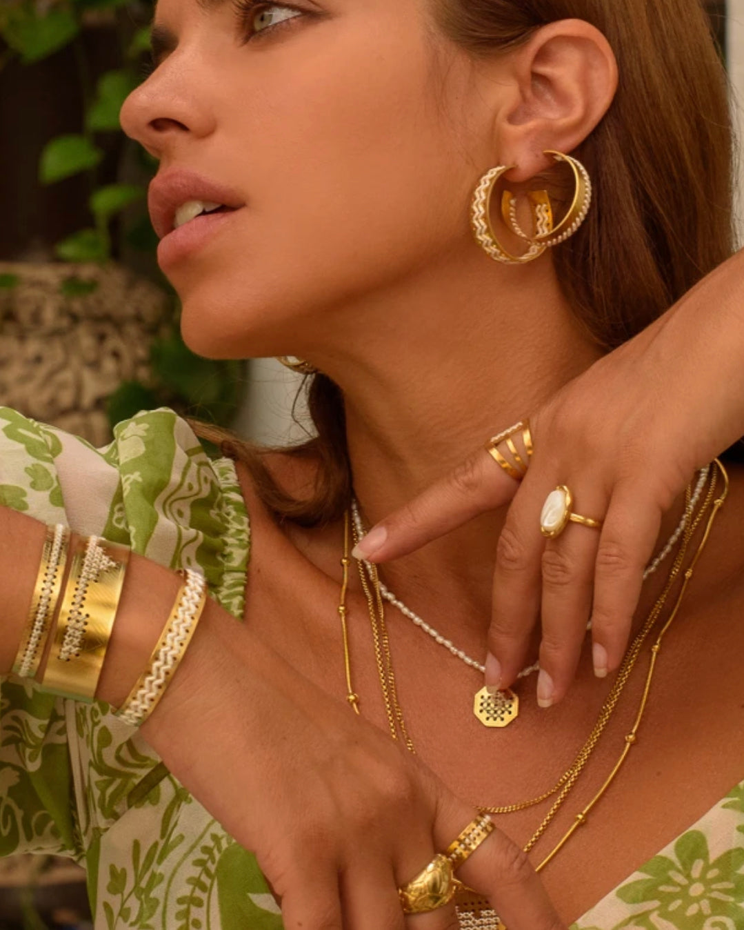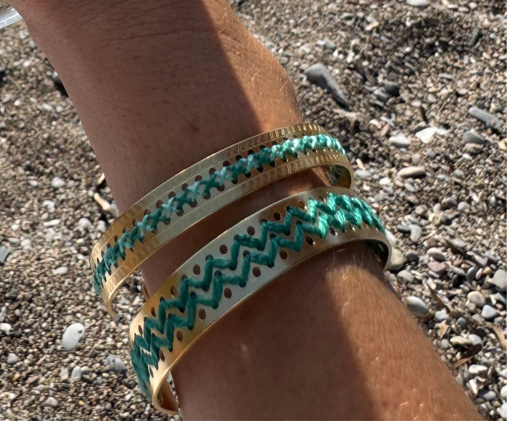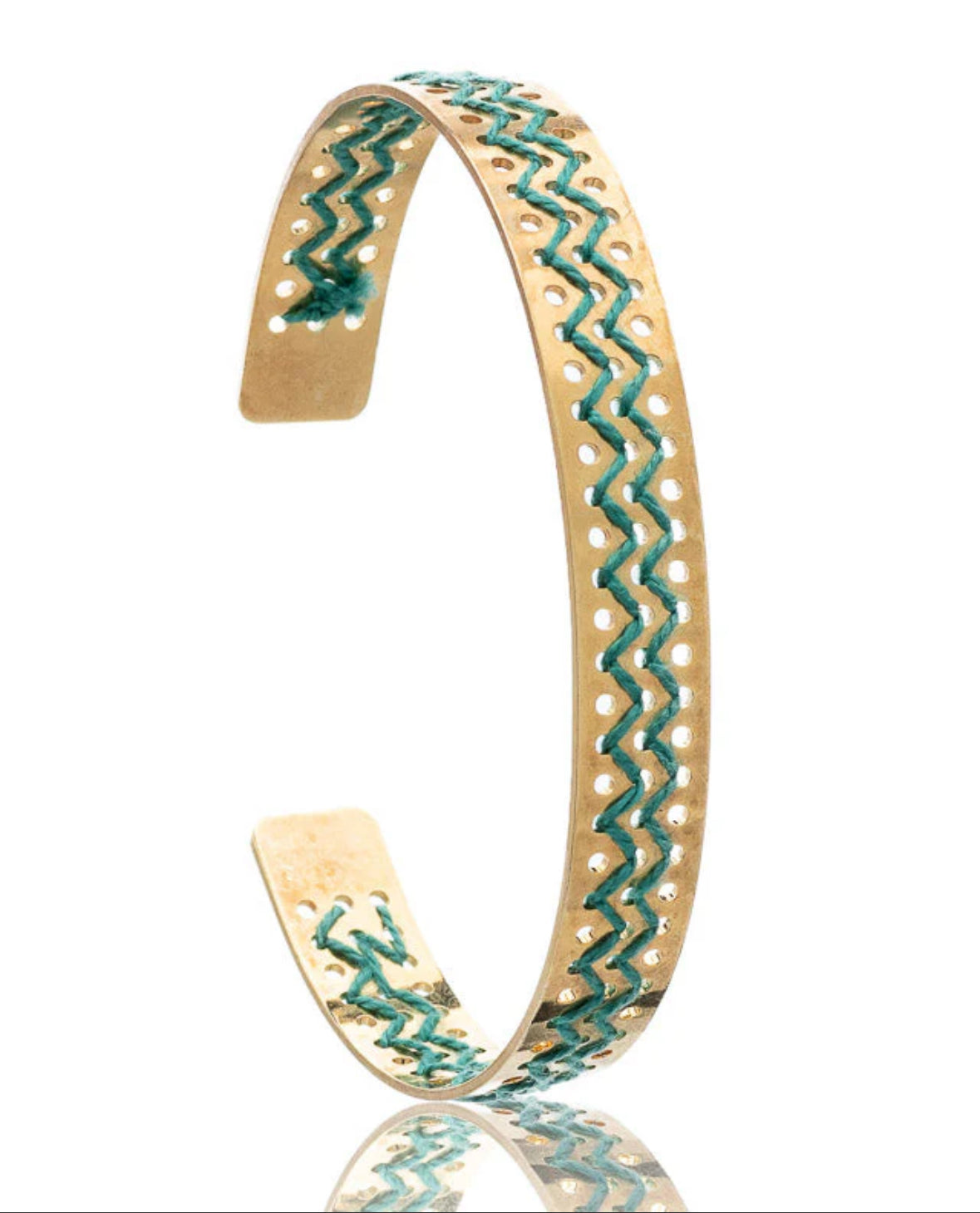 Pulsera bañada en oro 18K. Bordada a mano con estilo zig zag.